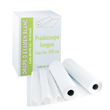 Colis de 12 rouleaux de 30 feuilles prédécoupé tous les 190 cm. 50 cm de large.