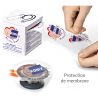 Stétho-Clean est une membrane de protection qui empêche le transport de maladies contagieuses via le stéthoscope ;