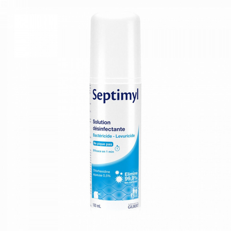 Désinfectant cutané GILBERT pour peau saine. Action assainissante et purifiante de la peau. Chlorhexidine 0,2%. Activité bactéricide et fongicide conforme aux normes EN 1040 et EN 1275. Spray pulvérisateur de 100 ML.
