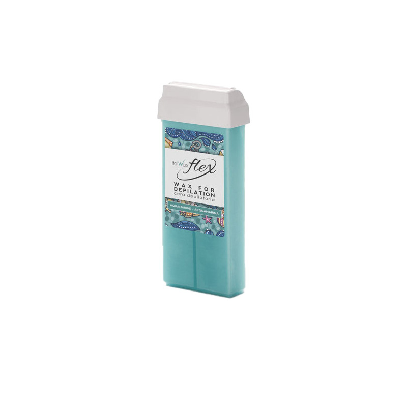 La cire Flex ne laisse aucune sensation d'adhésion sur la peau et élimine jusqu'à 100% des poils. Convient pour tous les types de poils. Cette cire à moyenne densité avec dioxyde de titane, à la couleur bleu clair, est bien visible sur la peau. Elle fond à une température de 40°C.