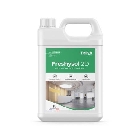 Freshy’Sol est un détergent peu moussant. Nettoie et fait briller tous types de sols (carrelages, sols plastiques ect).