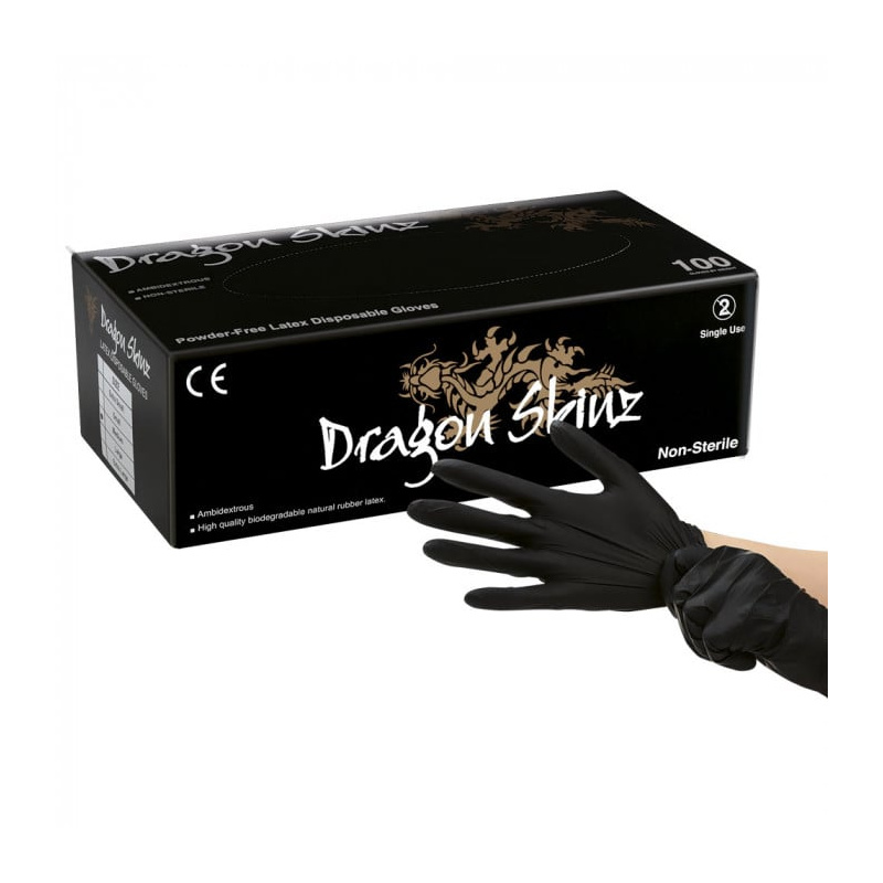 • Gants d’examen latex à usage ambidextre en latex noir non poudrés ;