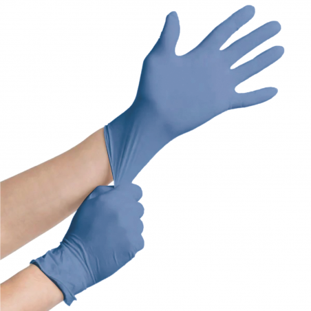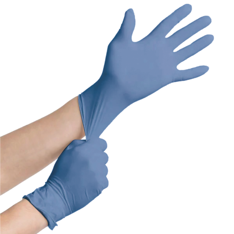 • Gants en nitrile stretch bleues non poudrés non stériles ;