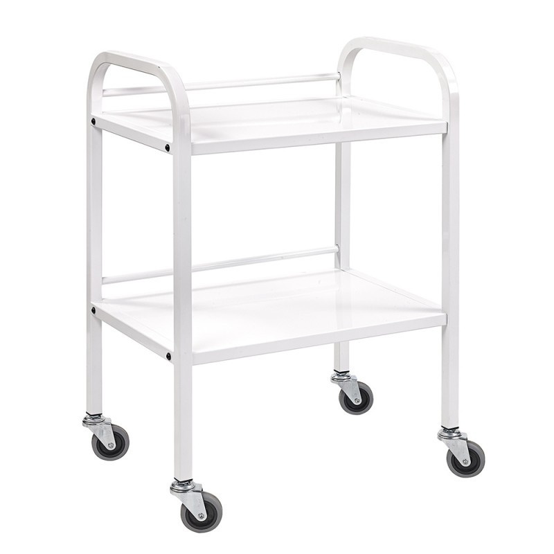 Guéridon en métal laqué blanc, 2 plateaux