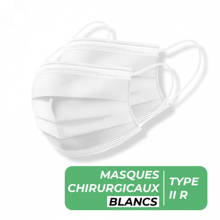 Masques chirurgicaux type II R blanc à très haute filtration, conformes à la norme EN14683.