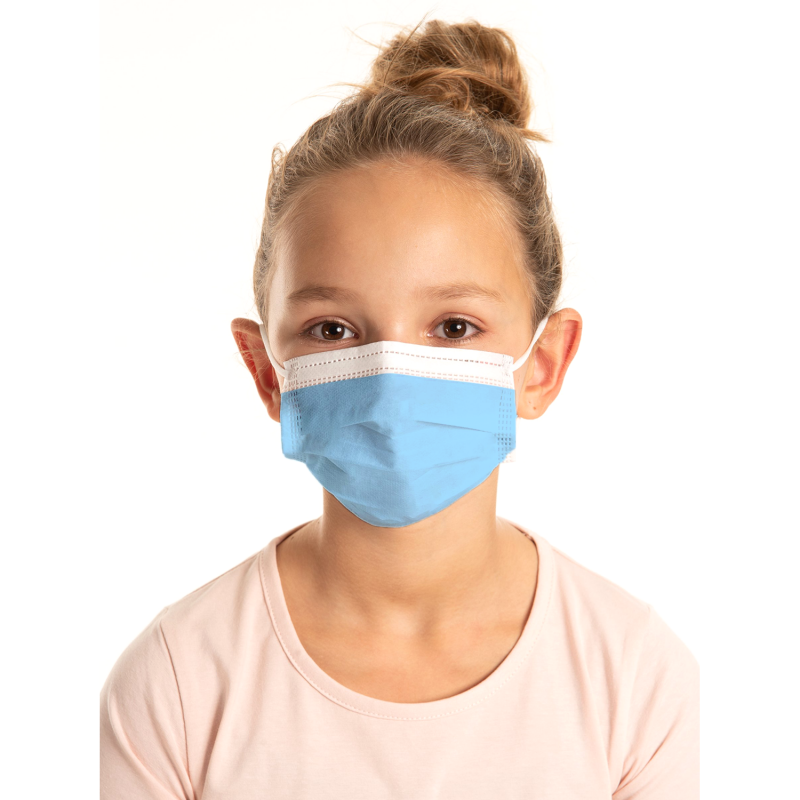 Masques chirurgicaux élastiques bleus très haute filtration >98%.
