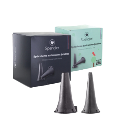 Spéculums auriculaires à usage unique pour otoscopes. Profil adapté aux contours anatomiques. Non traumatisant. Qualité soignée et contrôlée.