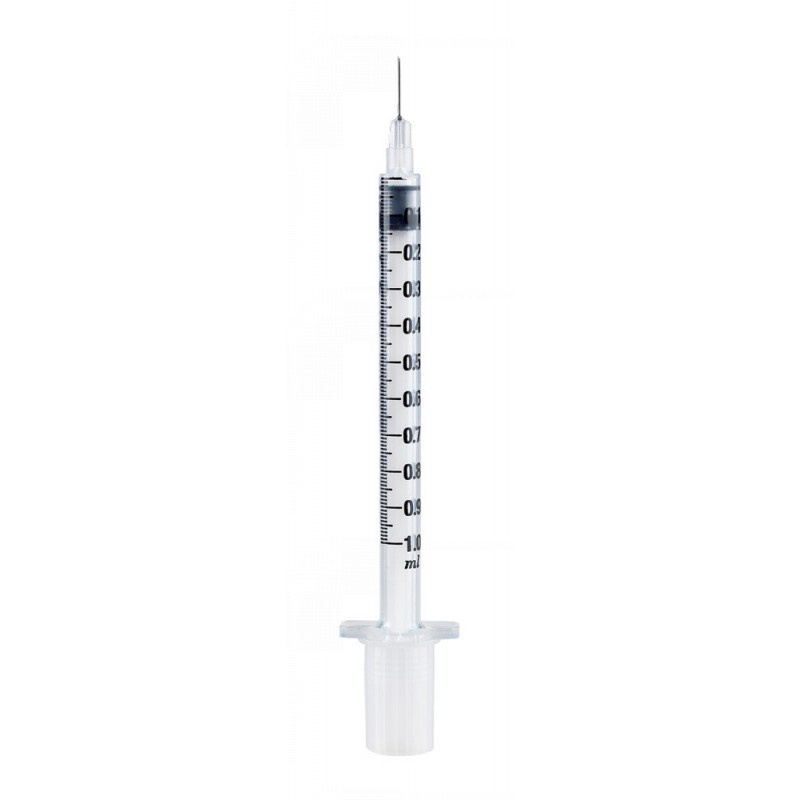 Seringue spéciale allergologie sertie avec aiguille 10 x 4/10 ou 13 x 45/10 pour tests tuberculiniques, allergiques, injections sous-cutanés. CE.