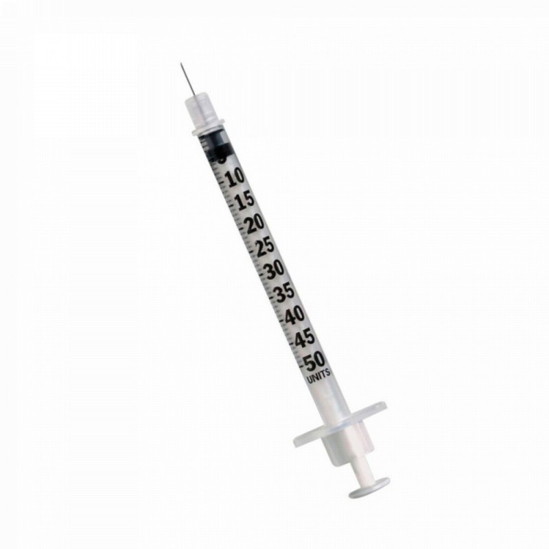 Seringue 3 corps spéciale insuline avec aiguille sertie - Sans latex ;