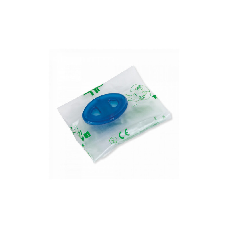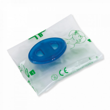Masque bouche à bouche avec valve spéciale permet une bonne introduction dans la bouche de la victime.